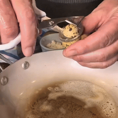 Quail eggs are a tasty ingredient for many dishes. However, opening them is a little different than cracking chicken eggs. You can’t simply crack them on the edge of a bowl. Instead, we suggest using a paring knife or quail egg scissors. Quail egg scissors are a fun and convenient alternative that adds a touch of joy to your cooking prep and makes your life a little easier.