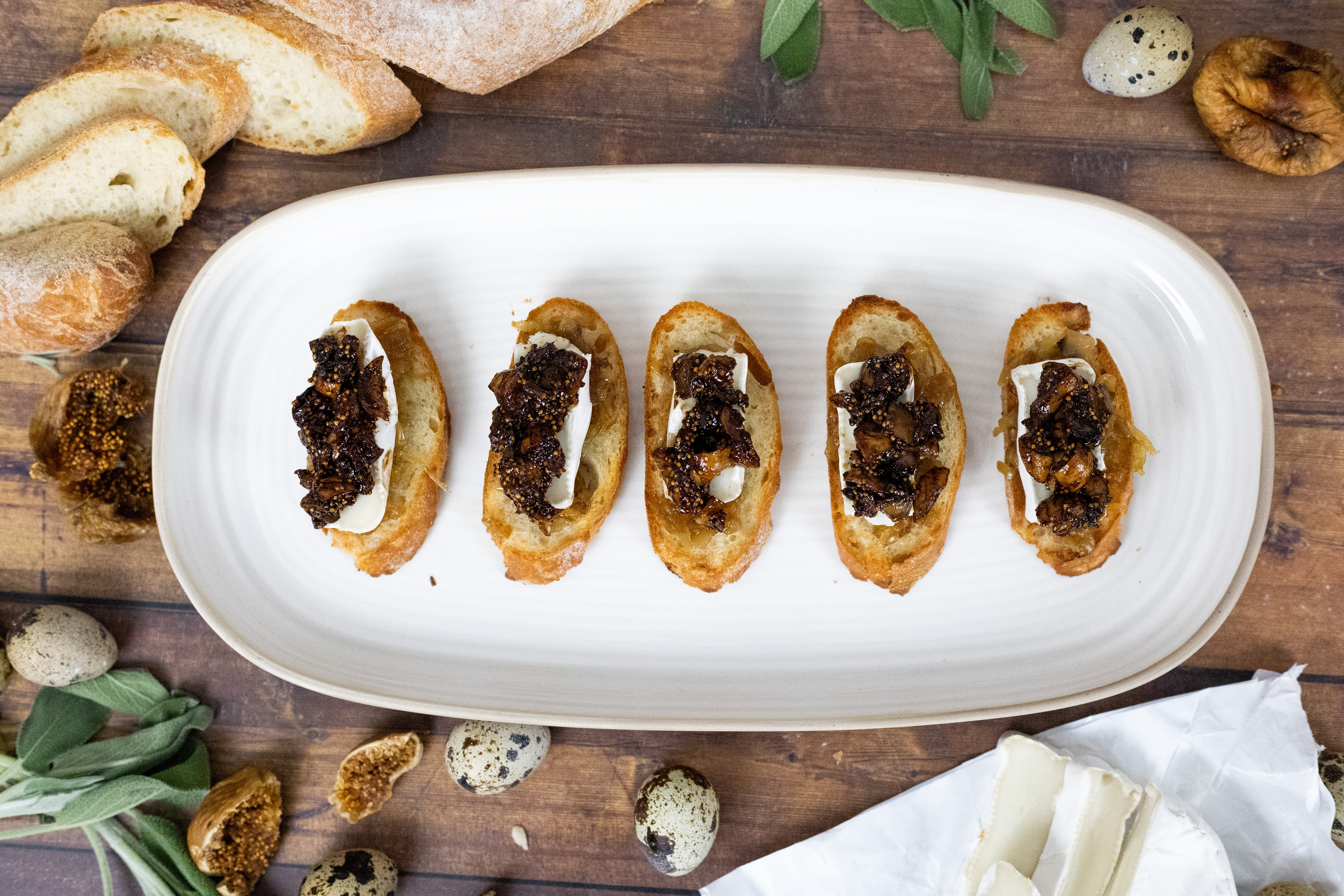 Caramelized Onion and Fig Crostini With Jammy Quail Eggs