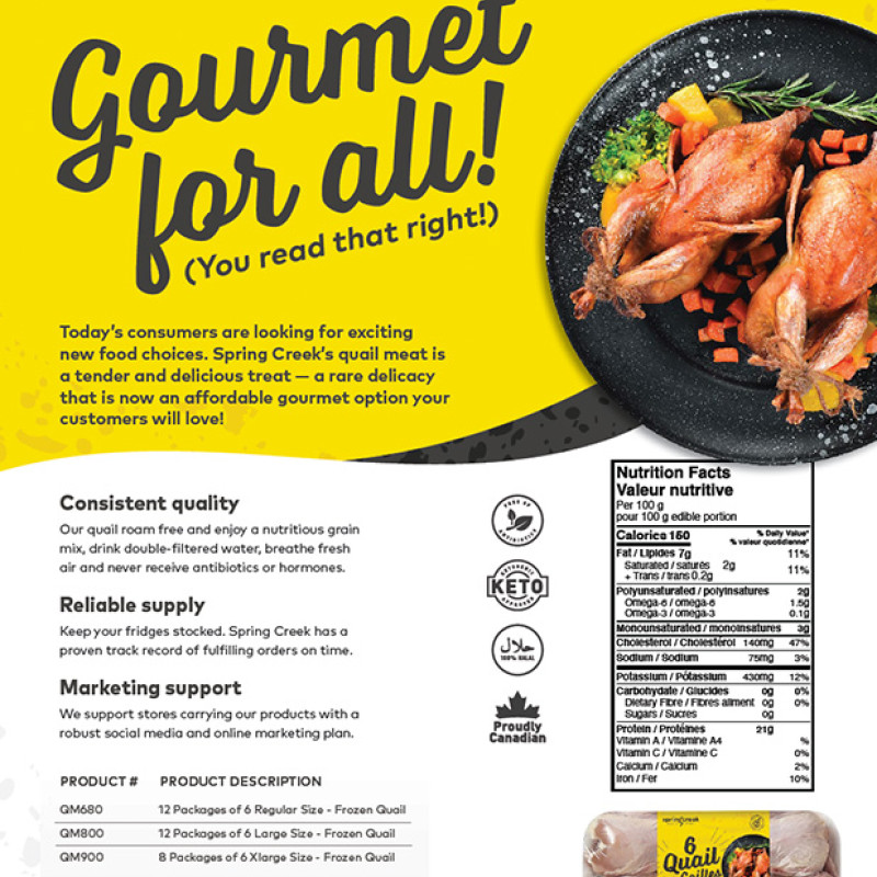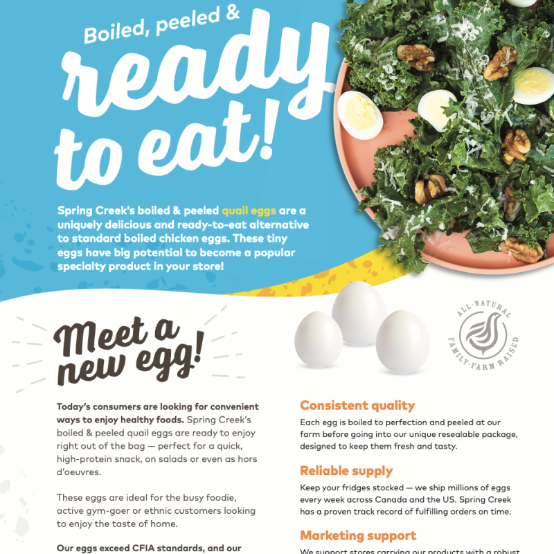 Spring Creek is a family-owned farm in Saint Anns, Ontario, that's on a mission to spice up your egg life with a real alternative... quail eggs! These tiny but mighty eggs are naturally delicious, nutritious and affordable.