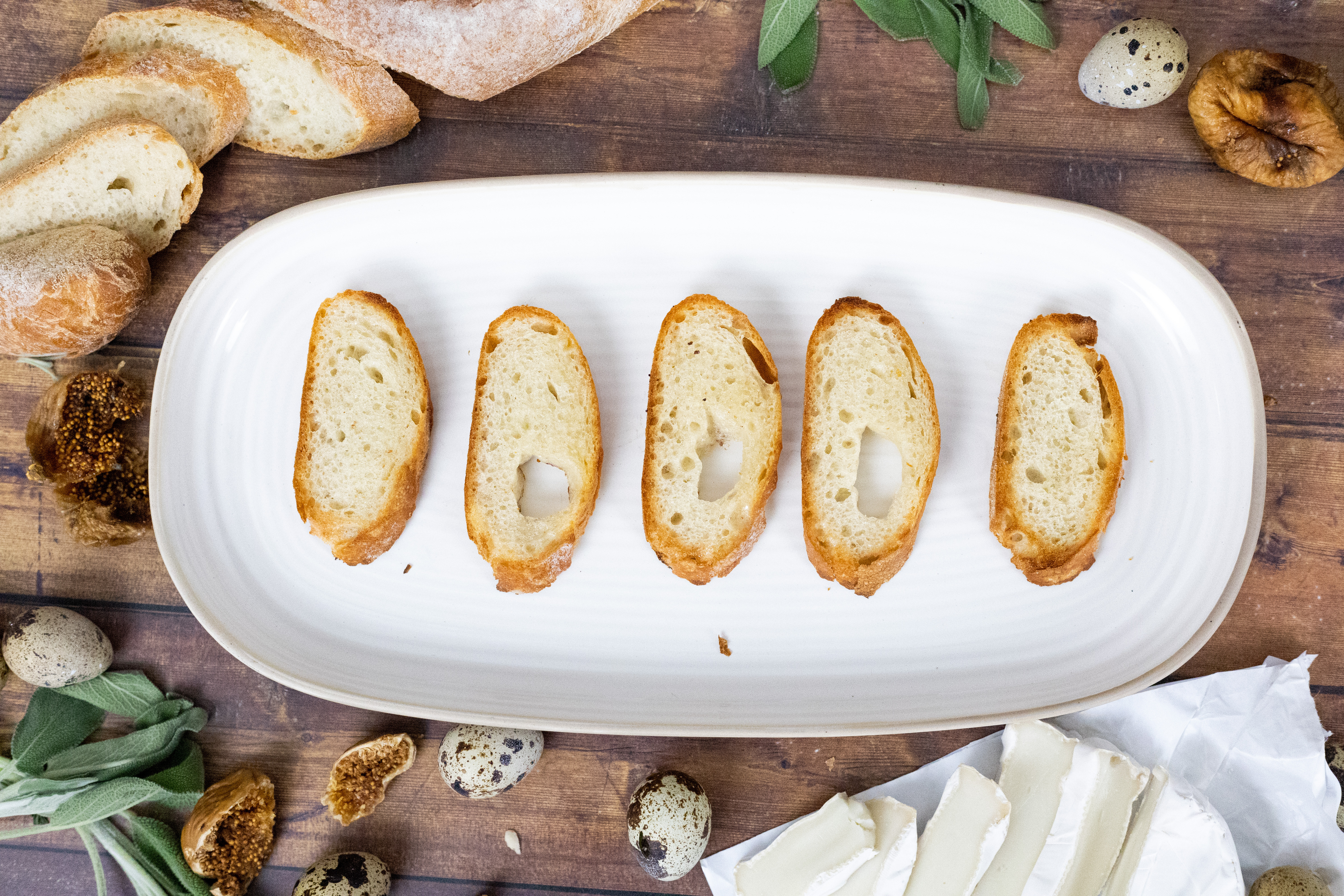 1 large artisanal baguette, cut to 1/2” slices