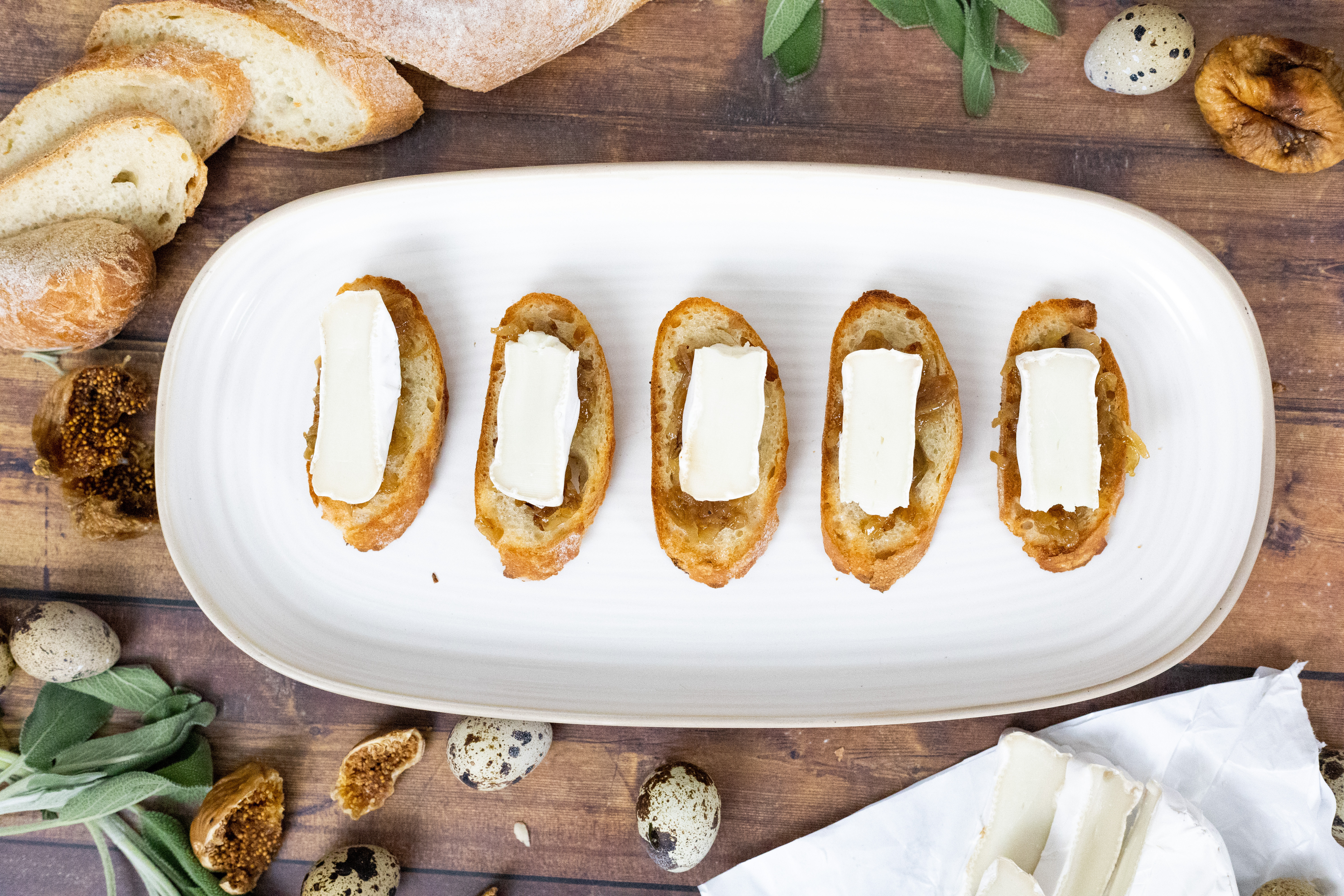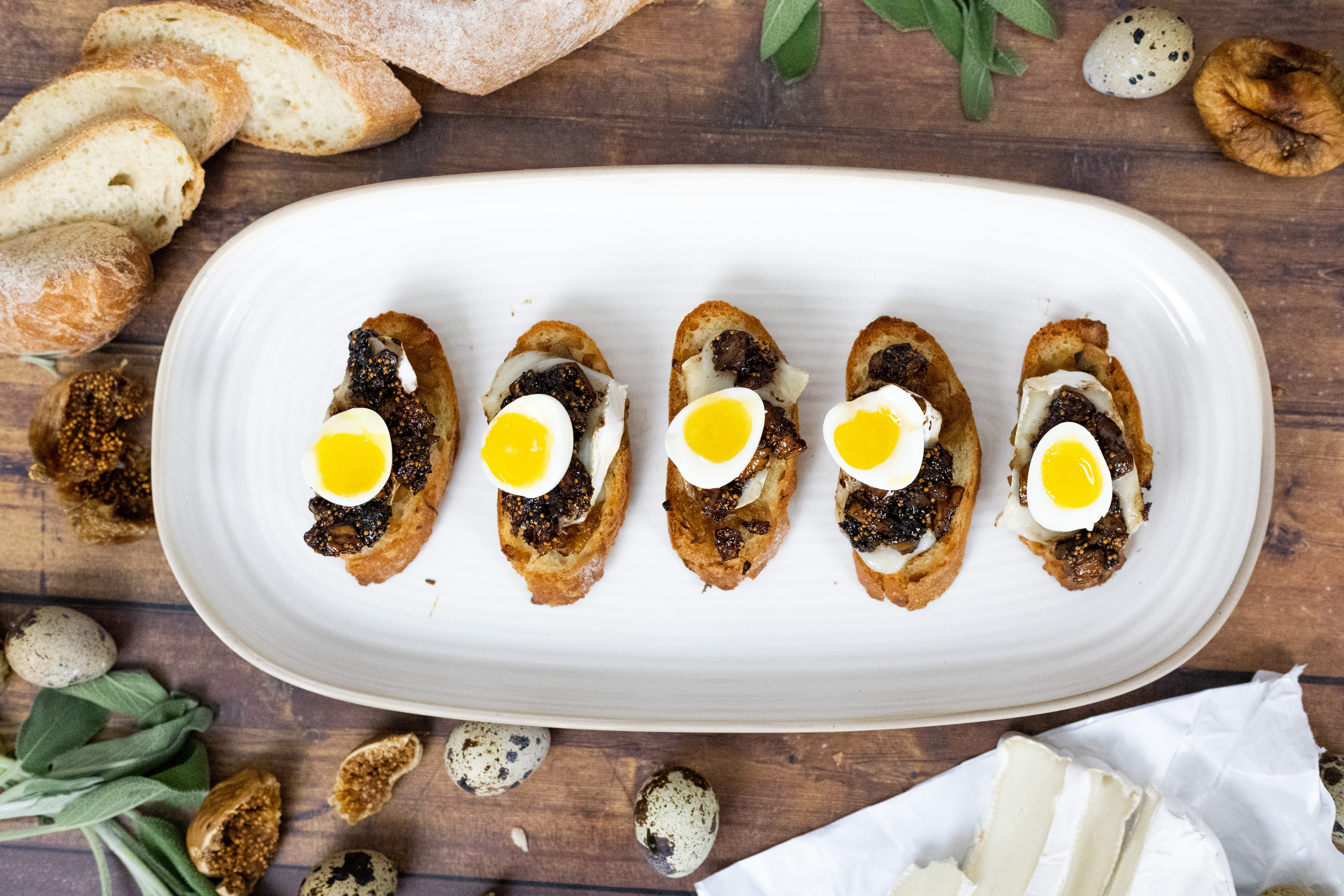 Caramelized Onion and Fig Crostini With Jammy Quail Eggs