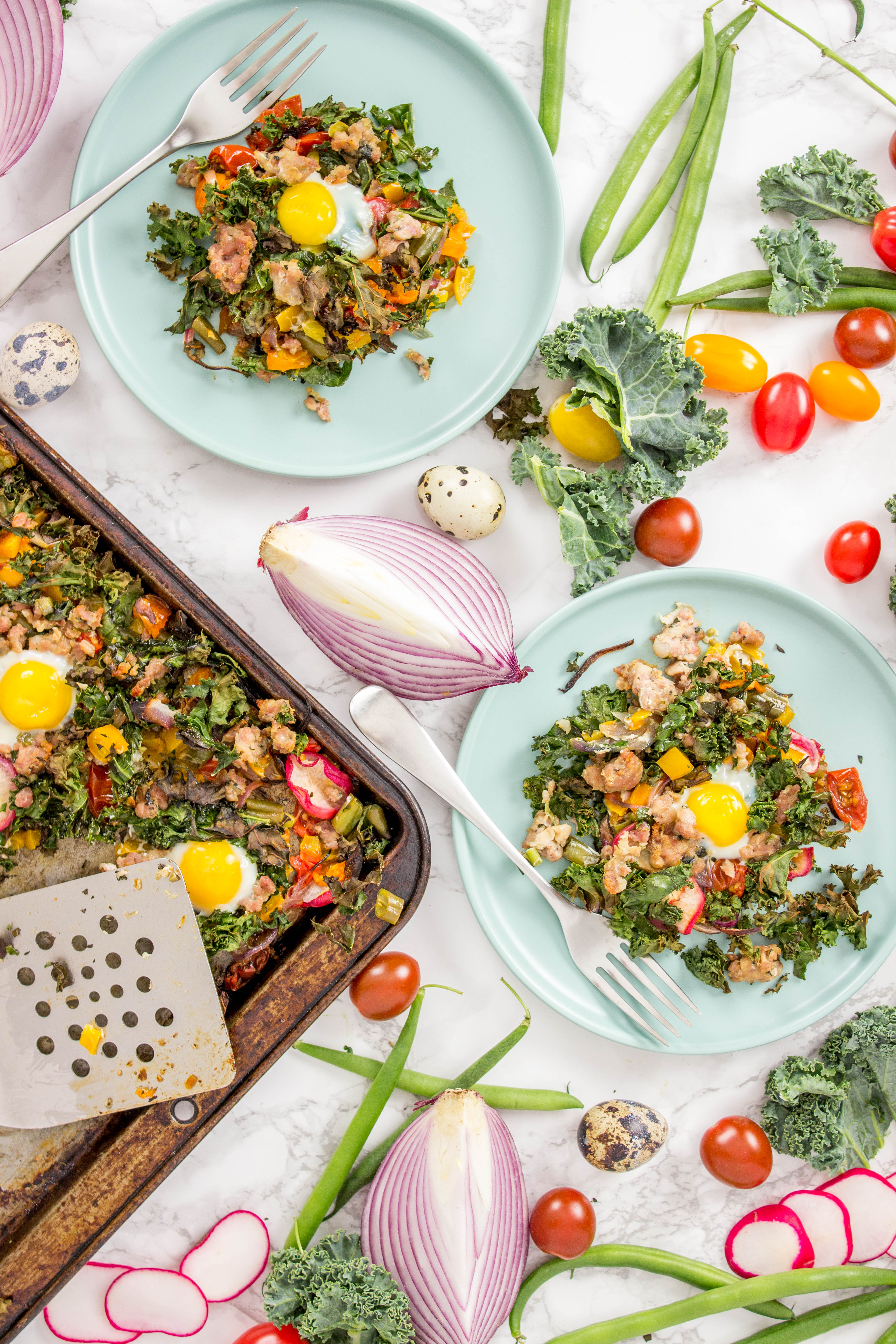 Spring Breakfast Sheet Bake With Quail Eggs