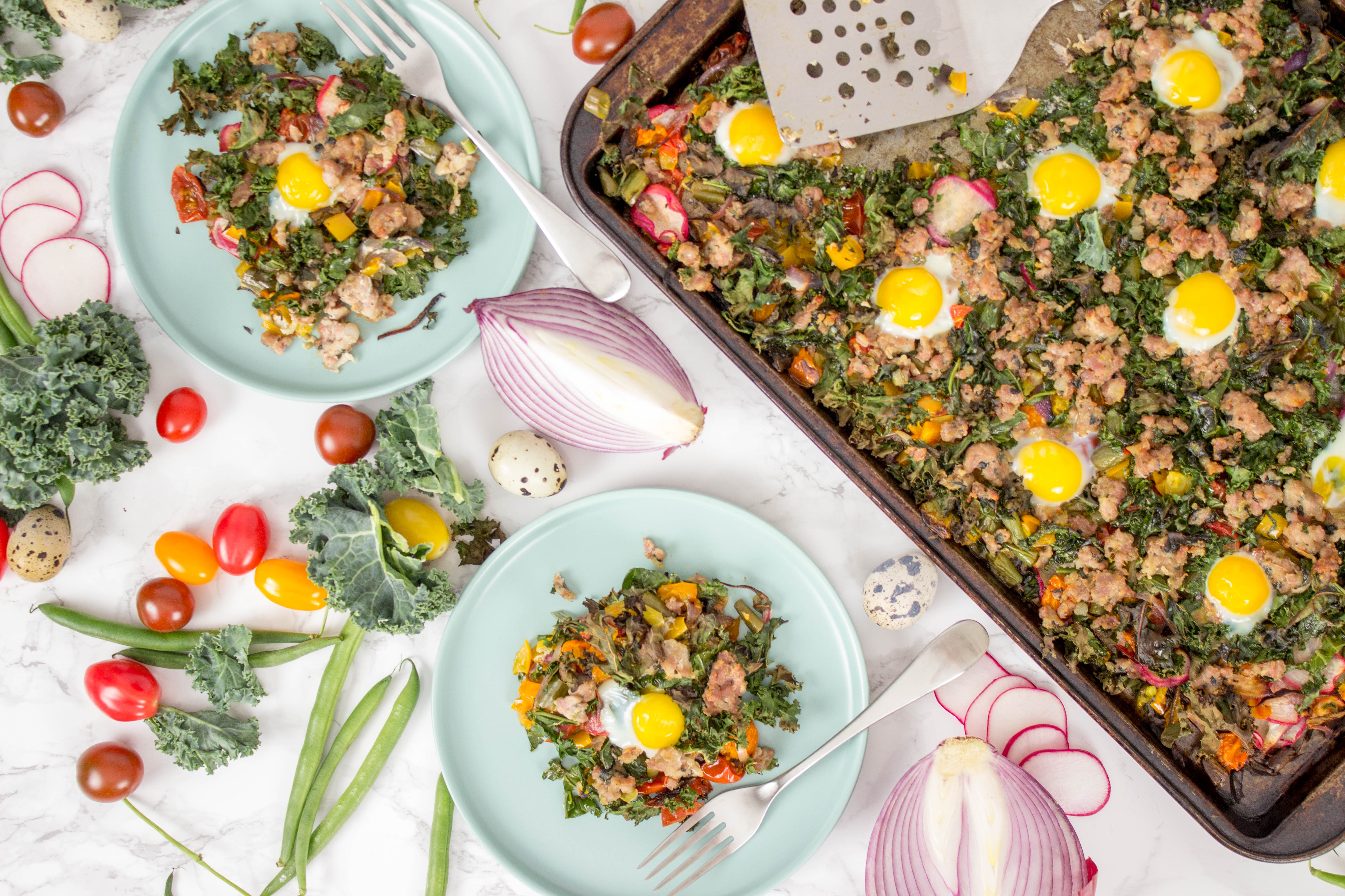 Start the day off right with this mouth-watering, show-stopping crowd-pleaser! Simply roast a few chopped vegetables, add sausage and kale then top with Spring Creek quail eggs… and voila! Breakfast is served!