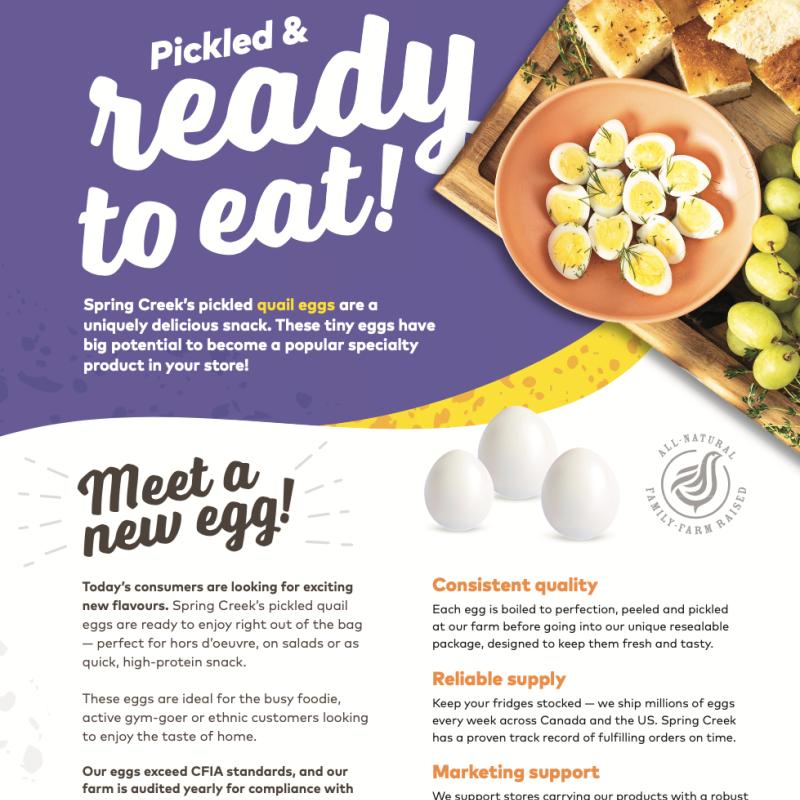 Spring Creek is a family-owned farm in Saint Anns, Ontario, that's on a mission to spice up your egg life with a real alternative... quail eggs! These tiny but mighty eggs are naturally delicious, nutritious and affordable.