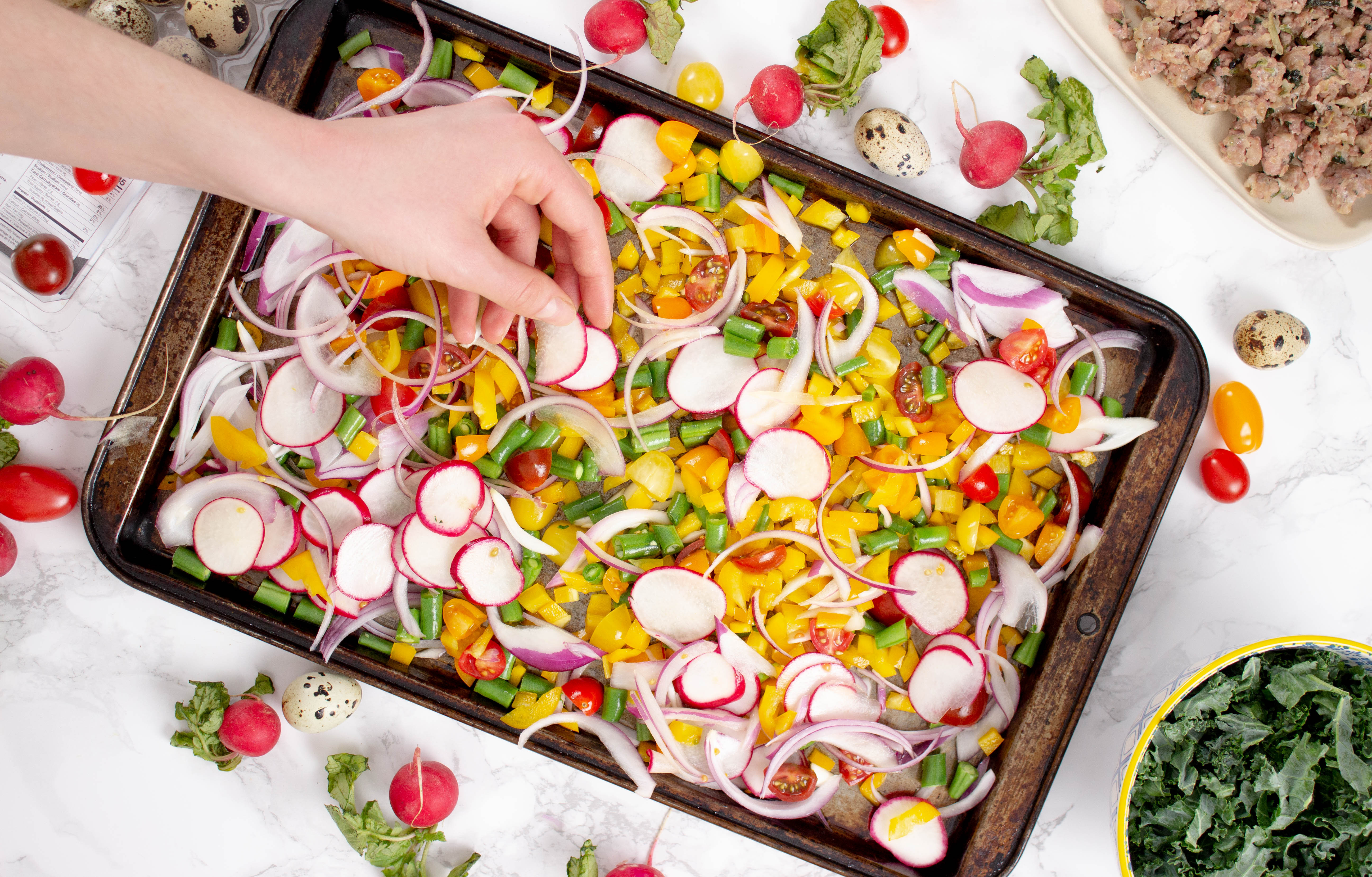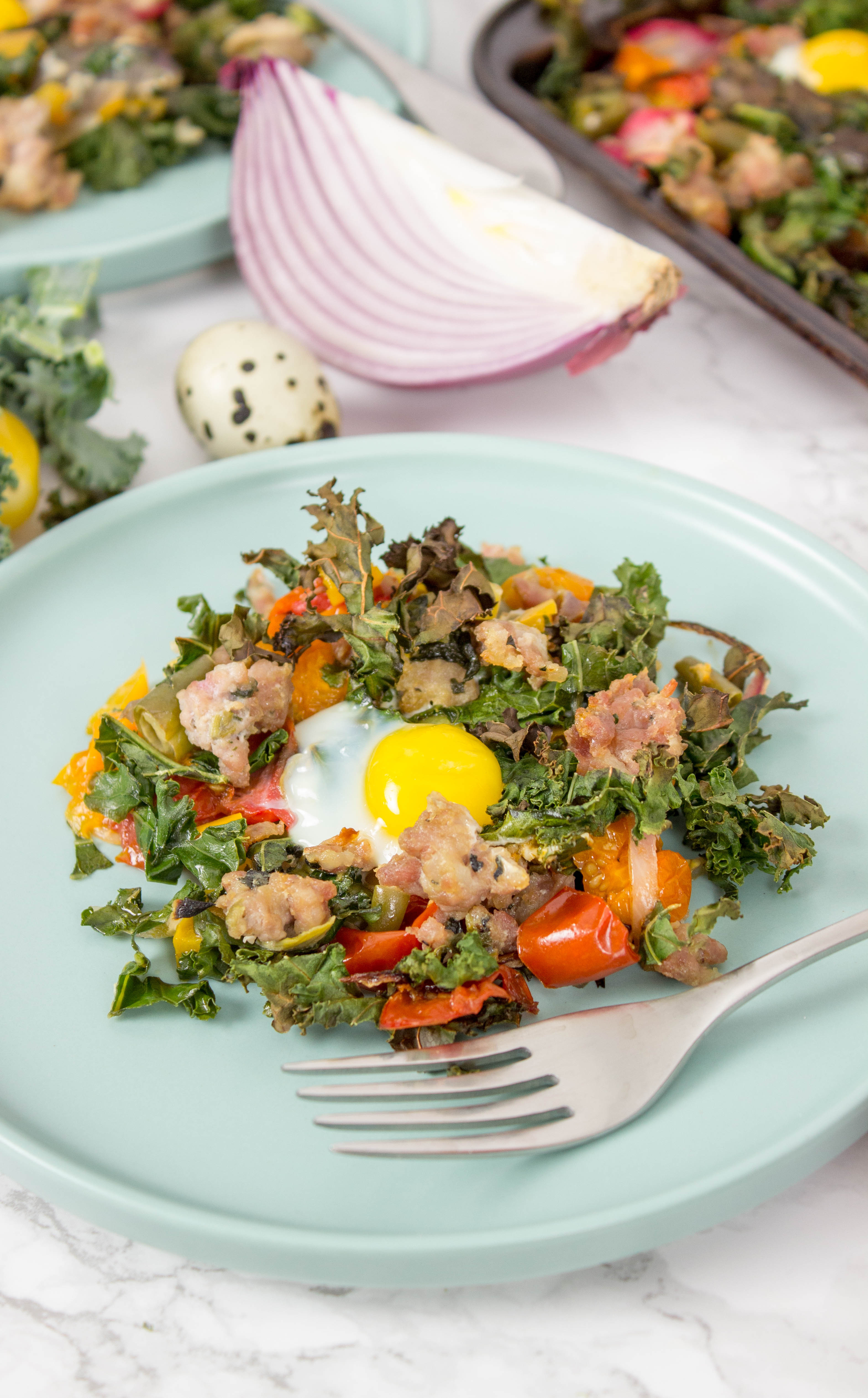 Spring Breakfast Sheet Bake With Quail Eggs